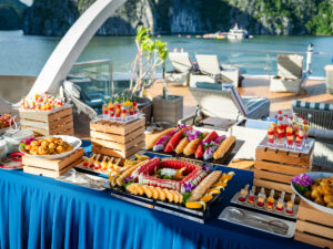 Serenity Grandeur Cruise goes Lan Ha Bay and sets itself apart with the most luxurious and extended day journey from Cat Ba, crafted for travelers who seek both comfort and discovery. With its spacious modern design and state-of-the-art facilities, the cruise ventures deep into Lan Ha Bay, offering rare access to untouched landscapes. Every detail is designed to make your journey effortless, elegant, and unforgettable.